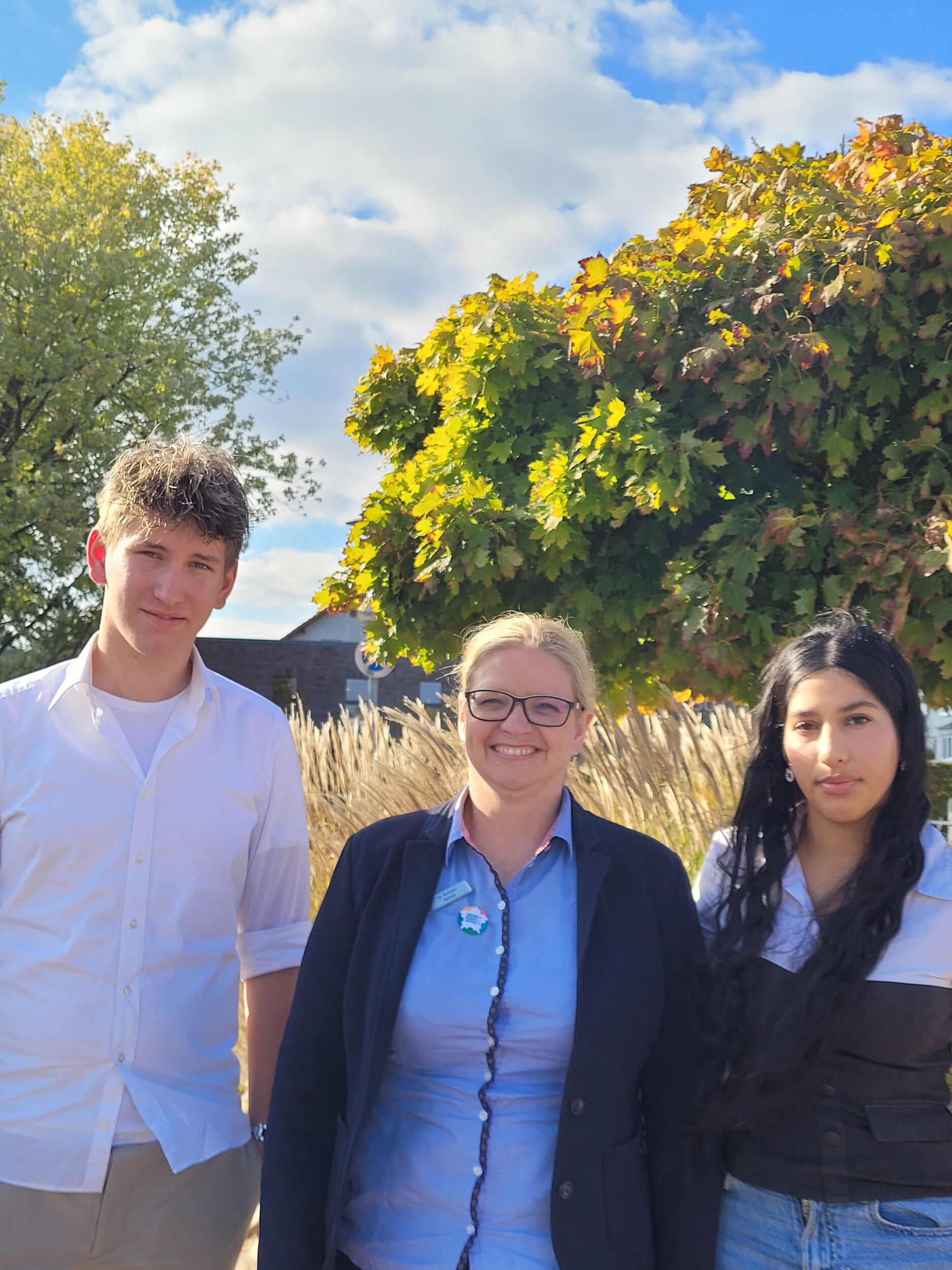 Frau Dr. Kempe vom Kreis Plön besuchte kürzlich die Schule im Augustental, um sich über die Berufsorientierung der Schülerinnen und Schüler zu informieren. Im Mittelpunkt des Besuchs standen Gespräche mit den beiden Schülersprechern Luca und Abir, dem Bürgermeister Herrn