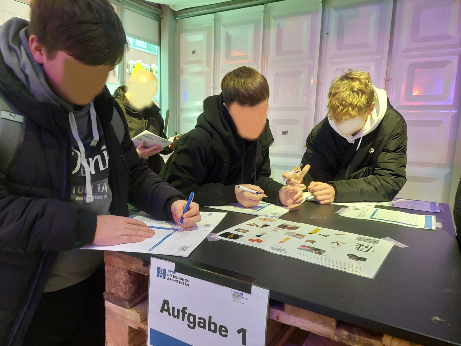 Die Schüler/innen der beiden Klassen wurden in die Sporthalle der ehemaligen Wilhelminenschule gebracht, wo der Moderator sie freundlich begrüßte und ihnen den Parcours erklärte.