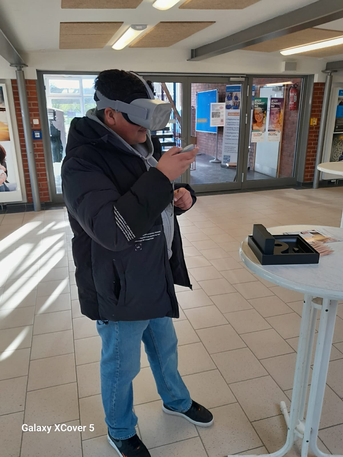 Vom 9.9 bis zum 14.09 wurden uns von der Universität Berlin und der Jugendberufsagentur für Arbeit insgesamt 5 virtuelle Brillen (Thema: Dein erster Tag) kostenlos zur Verfügung gestellt. Die Klassenstufen 8 und 9 konnten sich darüber 360°-Informationsvideos über Ausbildungsberufe ansehen.