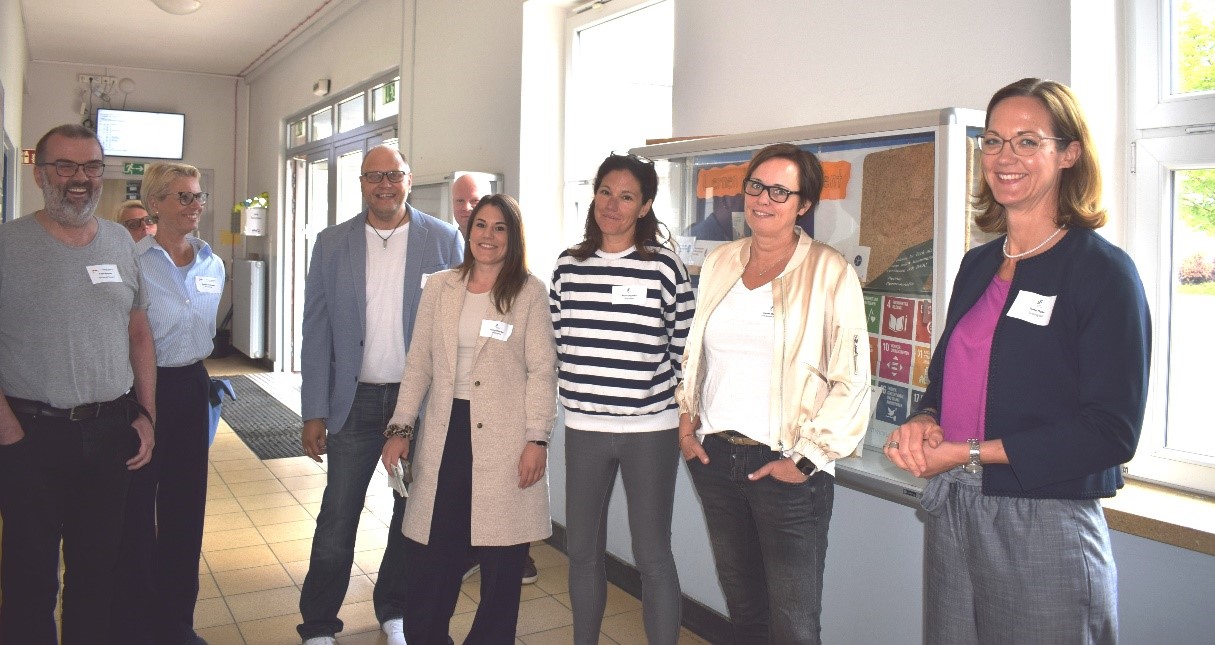 Vertreter*innen der Schule und der Bewertungskommission beim abschließenden Schulrundgang