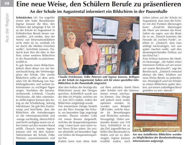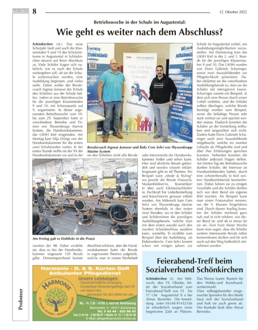 Die Schule im Augustental setzt sich weiterhin aktiv für die Zukunft ihrer Schülerinnen und Schüler für eine erfolgreiche realistische Berufsorientierung ein.