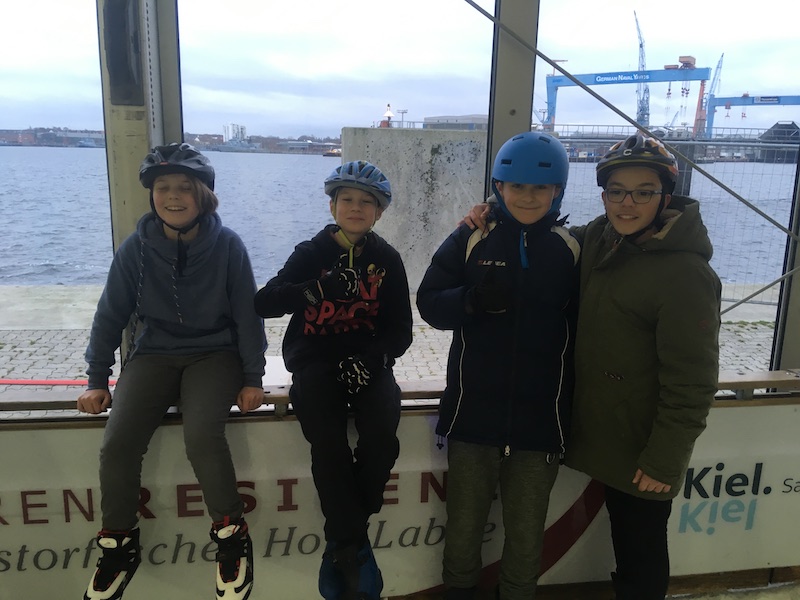 Spätestens nach einem kleinen Spaziergang bei frischer Brise vom Kieler Hauptbahnhof durch die Innenstadt zum Ostseekai waren wir alle hell wach und putz munter. Mit einem kleinen Wettrennen kurz vor dem Ziel brachten wir unsere Körper auf Betriebstemperatur.