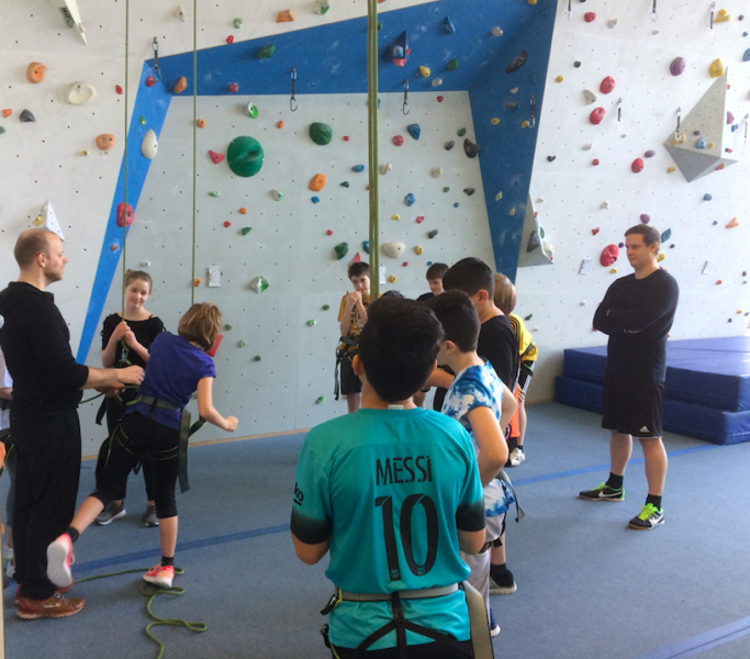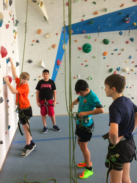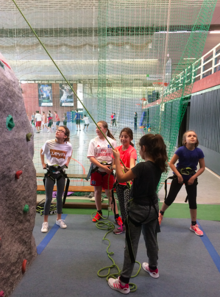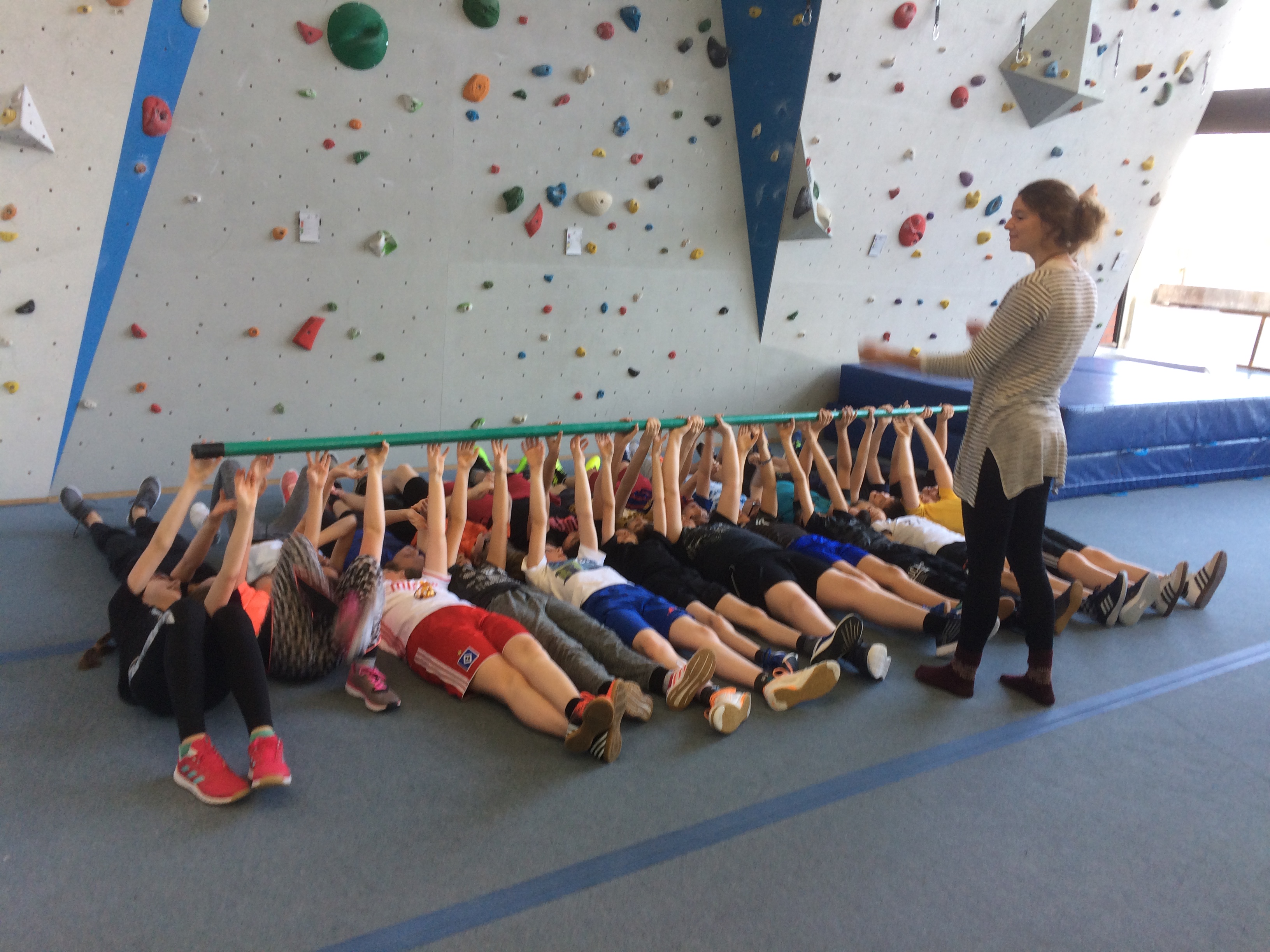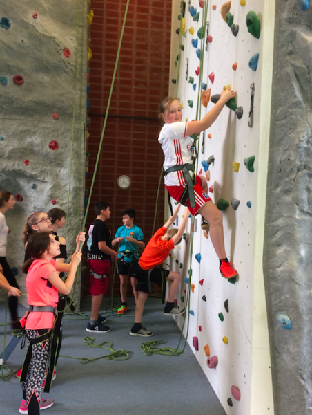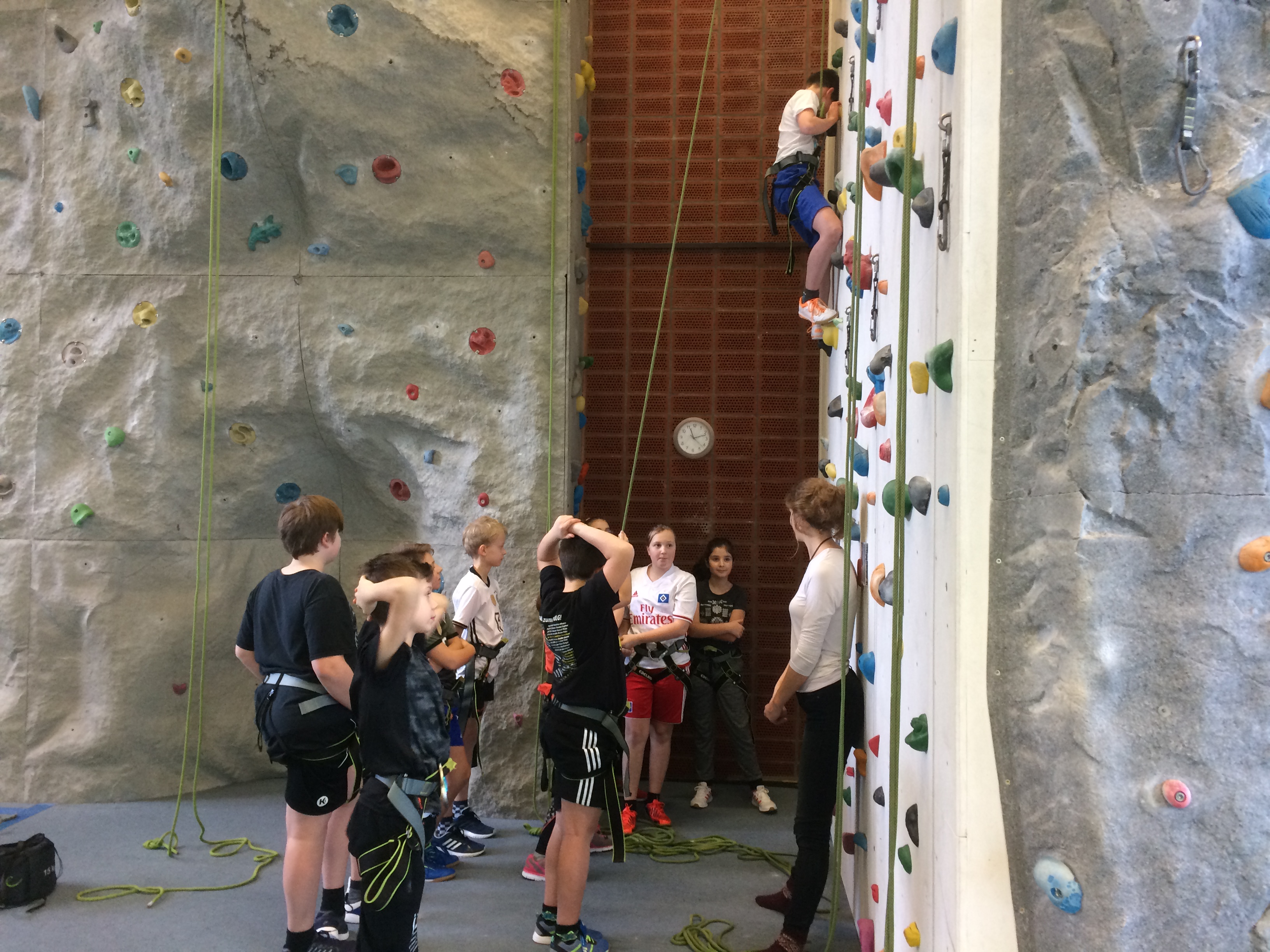 Voller Neugierde und gespannt auf die sportlichen Herausforderungen sind wir, die Sportprofil-Klasse 5a, mit dem öffentlichen Nahverkehr in die Uni-Sporthalle gefahren, um an einem Kletterkurs teilzunehmen.
