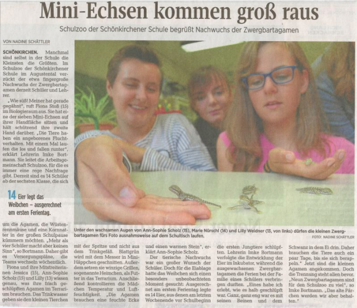 Dies ist nach dem Rennmäuse-Nachwuchs im Jahr 2012 das zweite Mal, dass wir an unserer Schule die Entwicklung von Jungtieren miterleben können.