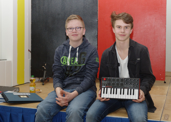 Insgesamt wurden vier Projektarbeiten im kleinen Foyer vor der Aula ausgestellt und vier weitere auf der Bühne präsentiert.