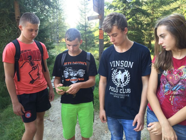 Am Montag nach dem Frühstück wurden wir in drei Gruppen eingeteilt. Zwei Gruppen gingen ins Felswandergebiet und die dritte Gruppe ist zum Baumwipfelpfad gefahren. Waldgruppe Nr. 1 hat Bäume vermessen und deren Wildverbiss kartiert, Waldgruppe Nr. 2 hat Wanderwege sowie Besonderheiten im Wald kartiert. Das heißt: Es wurden in einem GPS-Gerät Besonderheiten, die der Wald hergab, z. B. seltene Flechten, markiert. Die Baumwipfelpfad-Gruppe hat eine Besucher-befragung gestartet. Die Daten haben wir zusammen im Jugendwaldheim ausgewertet und auf die Rechner übertragen.