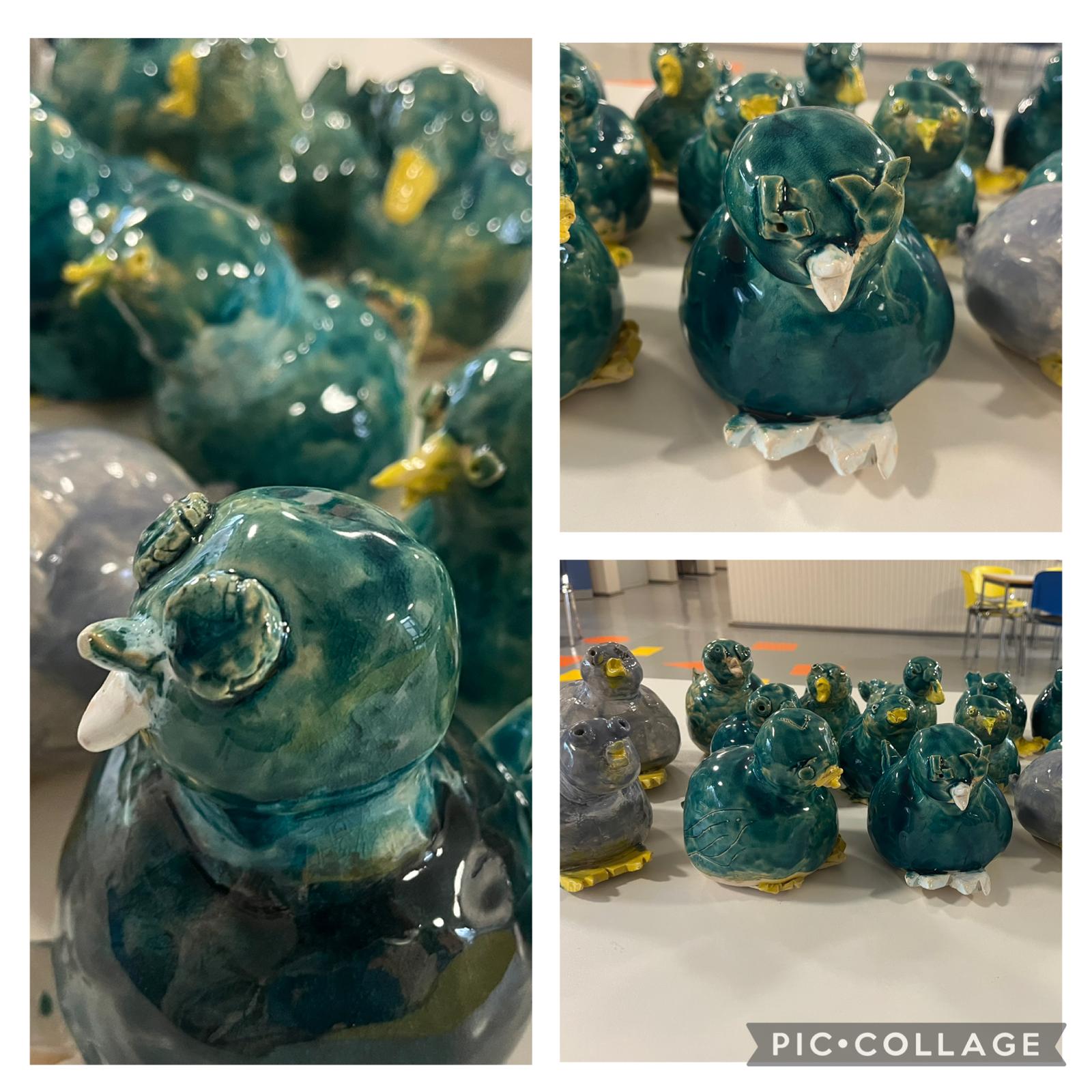 Zum Ende des Schuljahres werden viele Schüler-Arbeiten mit nach Hause genommen. Auch diese tollen Hühner flattern heim.