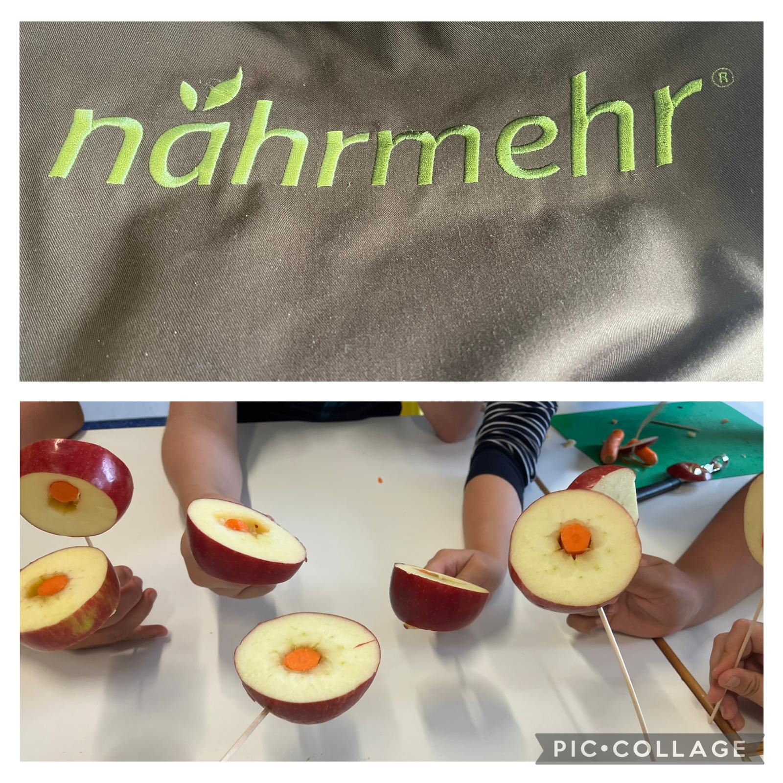 Am Mittwoch, den 23. Juli 2025 hatte Klasse 6/7 Besuch von Frau Müller von "Nährmehr". In der Küche wurden gemeinsam zum Thema "Gesunde Brotdose" verschiedene Speisen zubereitet.