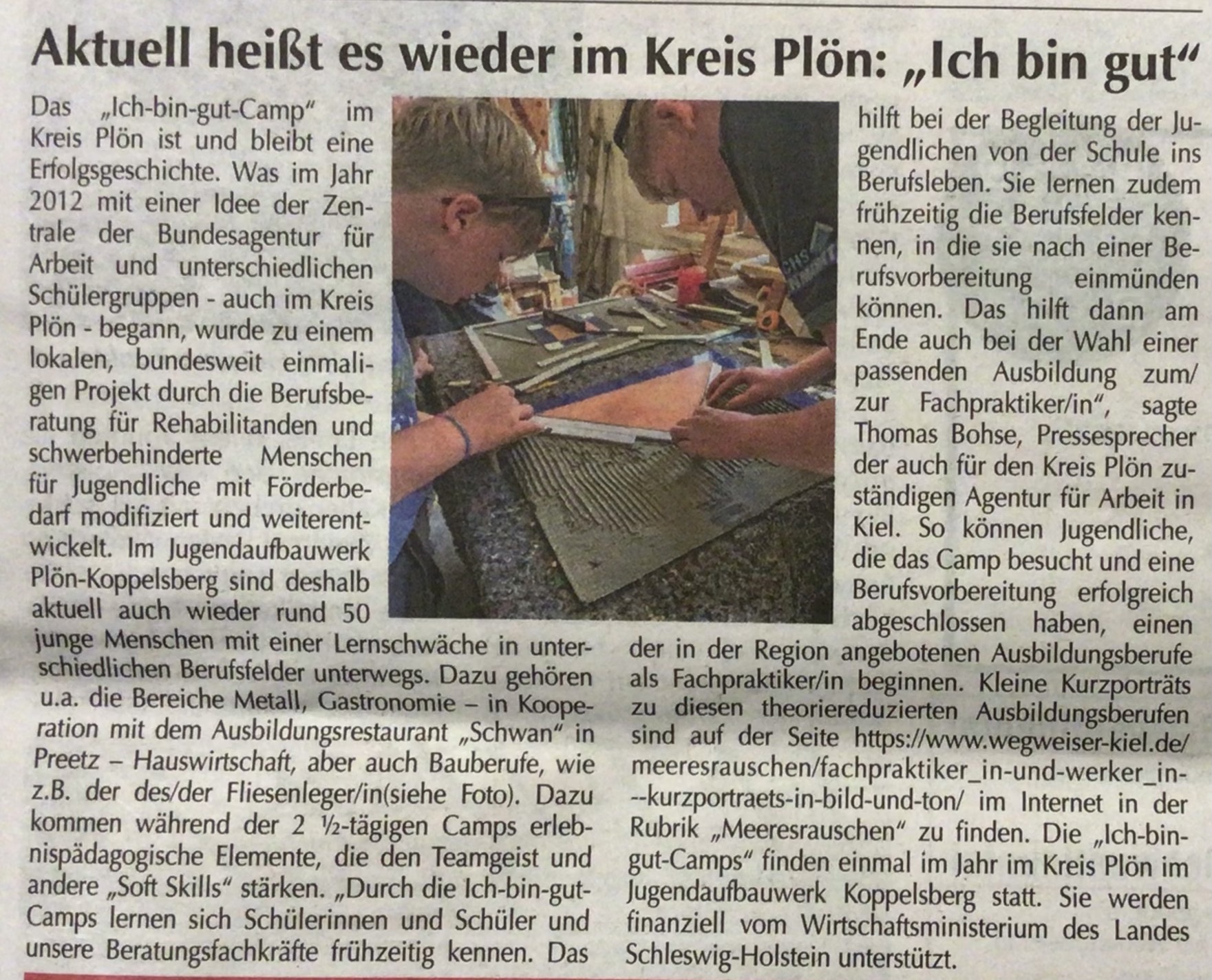 Klasse 9 hat am "Ich bin gut - Camp" teilgenommen. Dazu ist ein Artikel im Probsteer vom 17. September 2025 erschienen. Auf dem Foto sind ...?